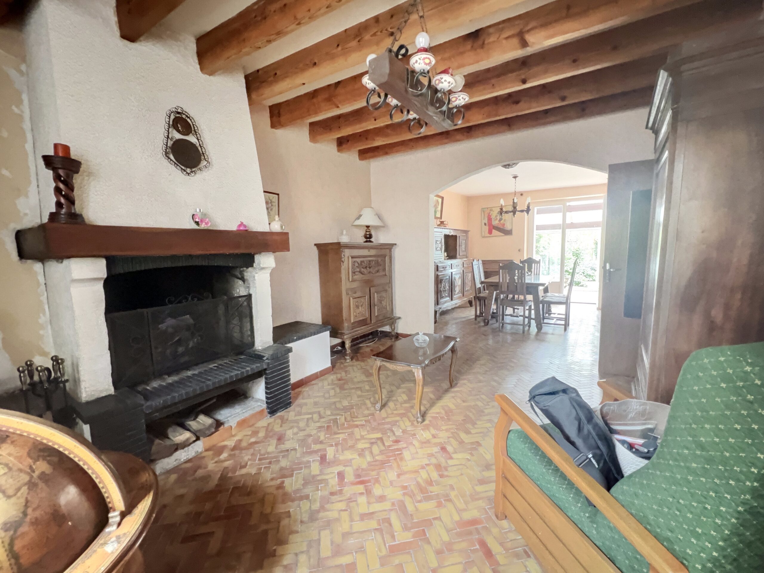 Rez-de-chaussée : salon-séjour lumineux de 31 m² avec cheminée, cuisine fermée, WC indépendant.